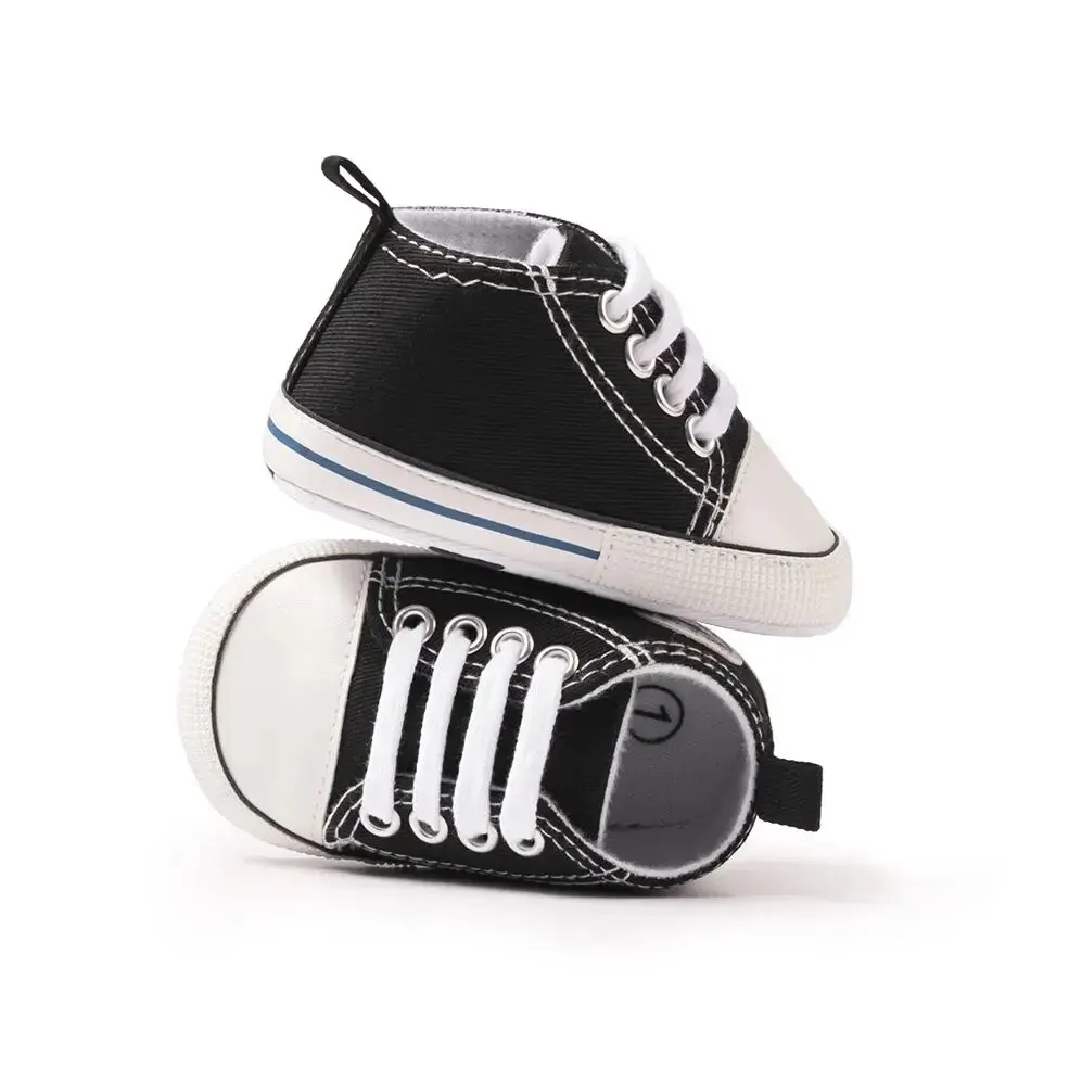 These baby classic canvas star sneakers bring timeless style and comfort to your little one’s early steps. Made from soft, breathable fabric with a secure anti-slip sole, they’re perfect for both boys and girls learning to crawl or walk. The lightweight design ensures flexibility and comfort, while the classic star pattern adds a cute, sporty look. Ideal for daily wear, these first walker crib shoes make a perfect blend of fashion, safety, and durability for growing babies.