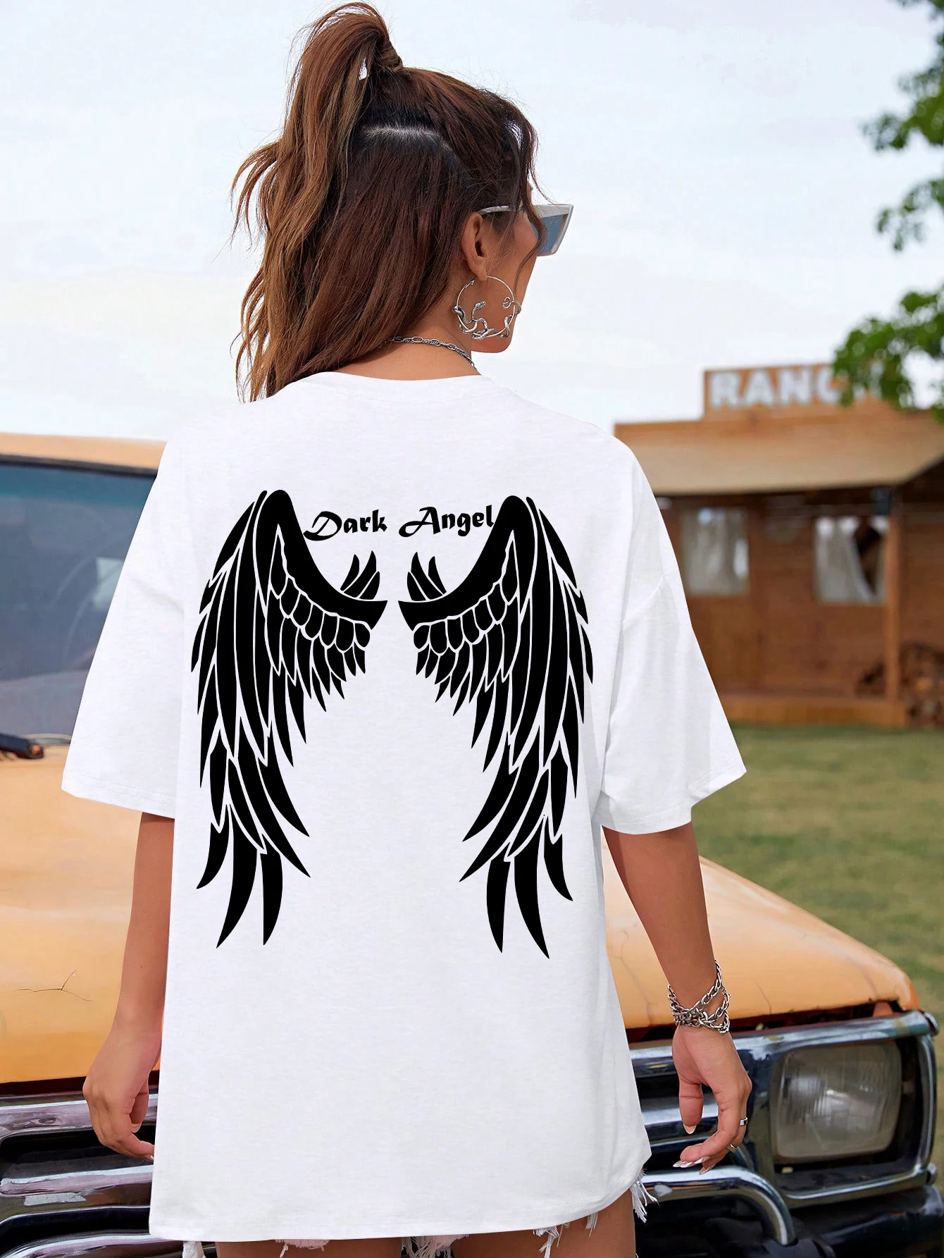 Dark Angel Wing Hot sale Graphic Printed T-Shirts For Women Loose Oversized Clothing Hip Hop Street Tshirt Cotton Short Sleeves