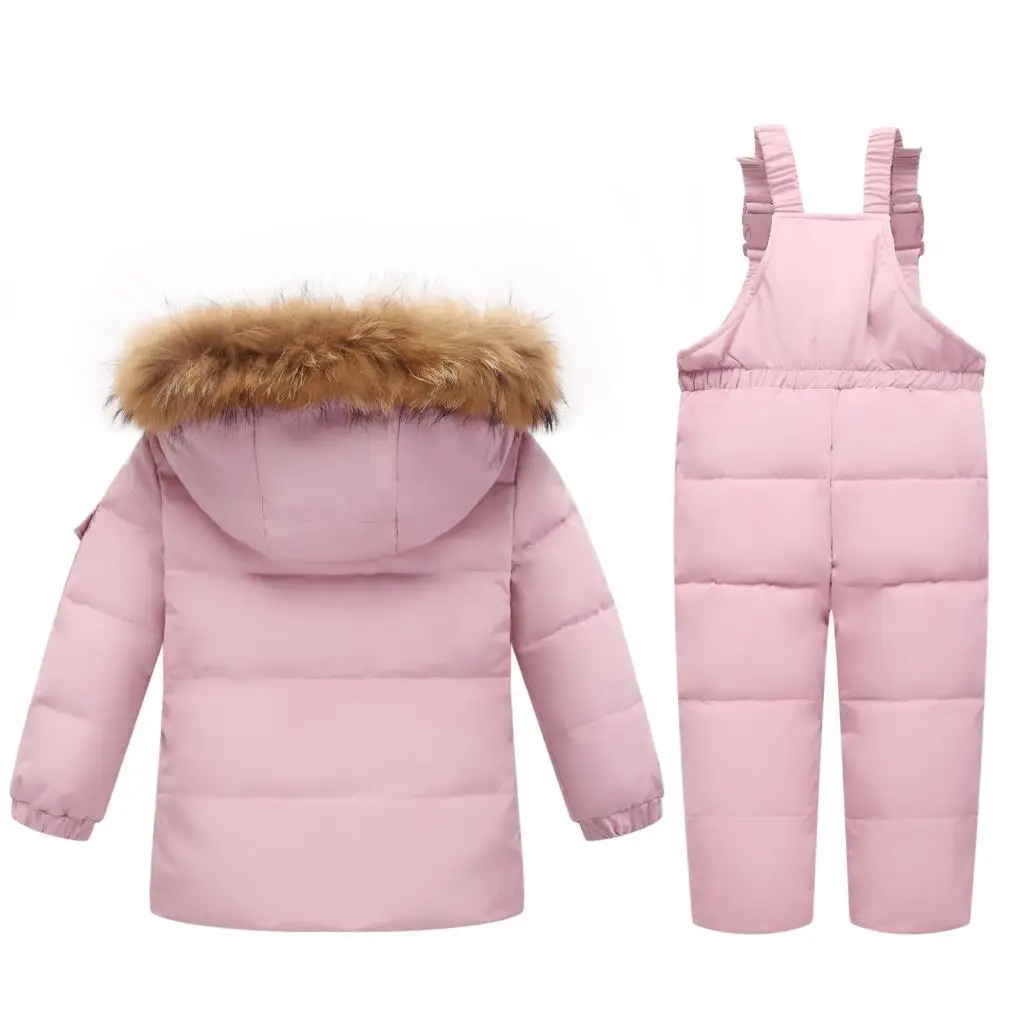 Keep your child warm even in extreme cold with this kids winter down jacket snowsuit set. Designed for temperatures as low as -30°C, the set includes a thick, insulated down jacket and matching overalls that provide full-body warmth and protection. Made from high-quality, windproof, and water-resistant materials, it ensures your little one stays cozy and dry during snowy adventures. Perfect for boys and girls aged 1–5 years, this snowsuit combines comfort, durability, and style for the harshest winter days.