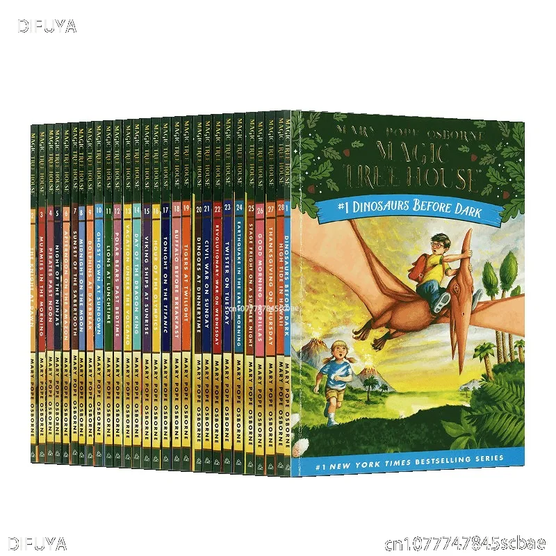 Inspire a lifelong love of reading with the Magic Tree House 1–28 English Reading Book Set by DIFUYA. This complete collection follows Jack and Annie on exciting adventures through time and history, blending fun stories with educational lessons. Perfect for young readers transitioning from picture books to chapter books, the series enhances vocabulary, comprehension, and imagination. Ideal for home reading or classroom use, this set makes an excellent gift for children developing their English reading skills.