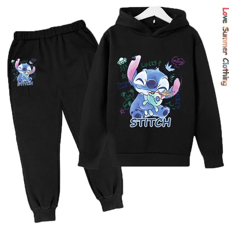 Bring fun and comfort to your child’s wardrobe with this Stitch kids hoodie tracksuit set. The 2-piece outfit includes a soft fleece-lined hoodie and matching pants, designed for warmth and breathability during autumn days. Made from durable polyester fabric with a vibrant HD Stitch print, this set combines style and coziness for everyday wear. Perfect for both boys and girls, it’s ideal for casual outings, playtime, or lounging in comfort and cartoon-inspired fashion.